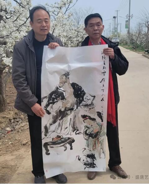 李养正院长已过七旬高龄,出身书香门第,自幼便在墨香熏陶下成长,骨子里满是文人的儒雅与正气。年少时他毅然投身军营,戎马生涯锤炼出他坚毅果敢的风骨;转业后坚守岗位,工作兢兢业业、一丝不苟,半生勤勉为人称道。离开工作岗位后,他倾尽心血创办西安盛唐书画院,凭着对书画艺术的满腔热爱与执着坚守,把书画院打理得风生水起,如今书院汇聚了近三千名书画学员,写生与创作基地遍布祖国大江南北,成为传承中华传统书画艺术的重要阵地。李院长身材魁梧,一米八几的身形挺拔爽朗,待人热情大方、平易近人,全然没有书画名家的架子,此次下乡献艺,他更是自掏腰包,不求分毫回报,一心只想把笔墨温情送给乡里百姓。