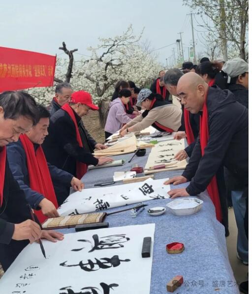 西安盛唐讯:2026年3月30日,西安盛唐书画艺术研究院50多位书画艺术家走进中国最美梨花大观园,参加中国西安阎良梨花节活动。