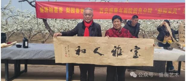 阳春三月,暖风熏人,阎良北屯街道的几千亩梨园尽数绽放,漫目梨花如堆雪凝霜,随风摇曳生姿,宛若人间仙境。坐落于花海中的李桥村,村容干净整洁,民风淳朴敦厚,处处透着乡间独有的祥和与温馨。此番,我应盛唐书画院阎良分院魏鸿海院长的诚挚邀请,全程陪同诸位书画名家参与此次活动,亲眼见证了笔墨传情的暖心时刻,亲身感受了艺术家的赤子情怀,心中满是感动与敬佩。